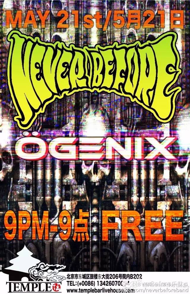 5月21日夜10時、鼓楼东大街坛酒吧TEMPLEにて、中国初のストーナーメタルバンドNever Before とカナダから来たOGENIXバンドが激しさいっぱいのパフォーマンスをお見せします!