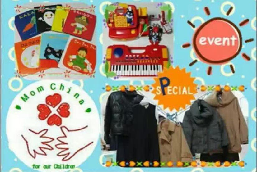 北京市朝陽区亮馬橋路二十一世紀飯店1階 バザー物品内容:中古衣類、中古絵本、中古玩具などの販売 皆様へのお願い 会場はレストランのお座敷をお借りして販売いたしますので、靴を入れる靴袋をご用意いただけると うれしいです。また、購入しました物品を入れる買い物バックも忘れずにお願い致します。 Mom Chinaとは? Mom China(マム チャイナ)の活動は、無償のボランティアスタッフに、企業様の無償提供、そして何よりも バザーやイベントにご参加してくださる皆様のちょっとの善意がたくさん集まって成り立っております! お買い物に参加することでできる支援。貴方も是非参加してみませんか?