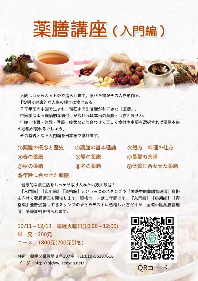 年齢・体質・体調・季節・症状などに合わせて正しく食材や中薬を選択すれば薬膳本来の効果が表れるでしょう。その基礎となる入門編を日本語で学びます。
