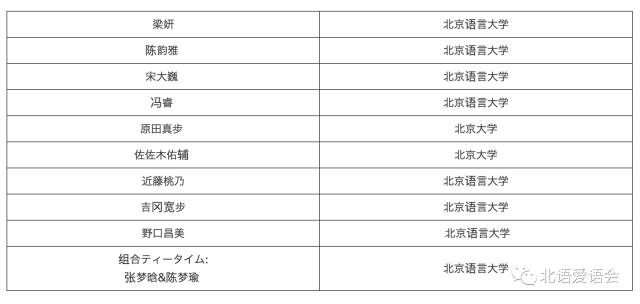 12月4日、北京語言大学の教二楼で開催された予選の結果、以下、10組のグループの決勝戦進出が決定しました。おめでとうございます!!