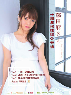 2006年出道的藤田麻衣子,今年已跨入到了出道的第十个年头。10年来,藤田麻衣子经历了起起伏伏,有过辉煌的时刻,也有过黑暗的阶段。最早从名古屋出来东京时,藤田麻衣子一边做牙医助手一边在街头进行音乐活动,成名对于她来说甚至是一种奢想。凭借自己的才华成名之后,藤田麻衣子在群星闪耀的日本歌坛,能够一直坚持着每年创作歌曲,保持着超高的人气,这本来就是一个奇迹。此次的演出,作为藤田麻衣子出道10周年纪念,藤田麻衣子将以最原始、最真实的面貌,为大家带来精彩绝伦的演出。