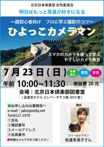 超初心者向け プロに学ぶ撮影のコツ@北京日本倶楽部