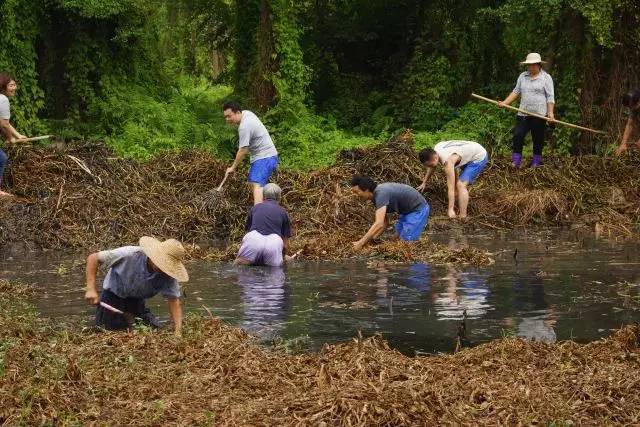 ▲家工作营在广西崇左龙州陇港-清理鱼塘杂草